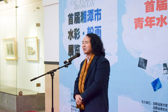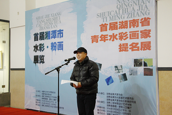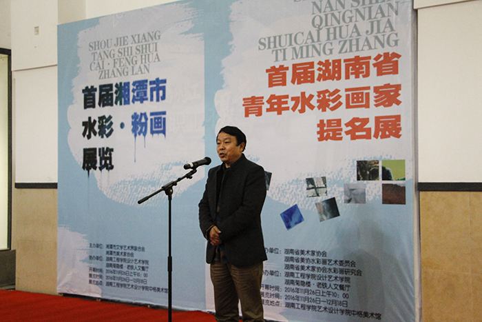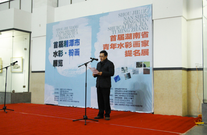 在段辉经理主持下,湖南工程公司党委委员、副董事长罗毅平教授致欢迎辞,湘潭市美协主席王志坚、湖南省美协水彩画艺术委员会主任、中南大学博士生导师蒋烨、中国美协水彩画艺术委员会委员刘永健先生及湖南省美协副主席、湖南大学博士生导师陈飞虎教授为此次开幕式致辞。随后,为青年水彩提名画家及获奖者颁发证书,提名画家代表刘慧发表感言。