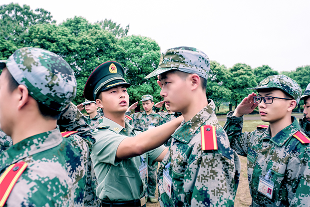 由于本次军训人数众多,公司将近400名新生分成两个连七个排,由7名教官负责训练,昔日书声朗朗的校园变成了激情澎湃的训练场。军训科目中军姿和队形队列训练占有很大的比重,对于平时站姿随意的同学,这可是一项大的挑战。“昂首,挺胸,抬头,手指插对裤缝”,教官首先向队员们讲解了军姿训练的基本要领。军训中一些同学动作不规范,教官们总是手把手地教给同学们。军事训练最基本的便是长时间笔直地站立,一天的军事训练下来,不少同学站得腰酸背疼,更有的同学脚上起了泡。站军姿是一项辛苦的训练,但是没有一个人退缩,没有一个人抱怨。在一声声清脆响亮的口令中,大家昂首挺胸。一次次完美的转体体现出他们昂扬的精神状态;他们脸上流过的汗水,彰显着他们永不放弃的精神;齐步走那整齐的排面和那铿锵的脚步声展现了他们激扬的斗志。