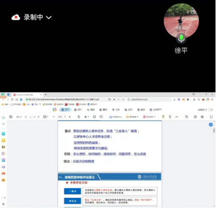 徐平副经理表示要紧紧围绕“一根本、两突出、三强化、五个度”的审核评估目标展开工作,充分了解本次评估的新变化。详细和老师们分享线上评估工作流程、内容及时间安排,并提出要求全员老师们要进一步了解评估工作的重点,围绕人才培养计划规范授课计划、教案等教学材料。