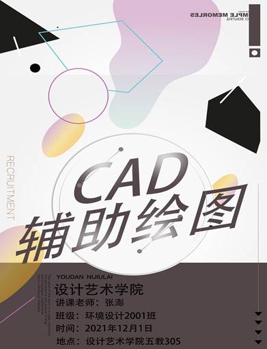 2021年12月1日周三上午,环境设计教研室张澎老师在beat365手机版官网入口305教室讲授《CAD辅助绘图》公开课。本次公开课主要以讲解《CAD辅助设计》平面布置及铺装图绘制为主,讲解图形创建,填充的操作方法,熟悉CAD执行命令的逻辑等。