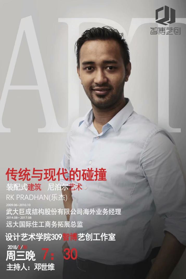 此次交流活动是环境艺术设计专业综合改革的系列活动之一,特邀请了曾任武大巨成结构股份有限公司海外业务经理和远大国际住工商务拓展总监的RK PRADHAN (乐杰)为大家讲解装配式建筑和尼泊尔艺术。此次沙龙带大家感受了一场文化盛宴。
