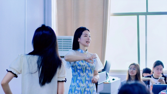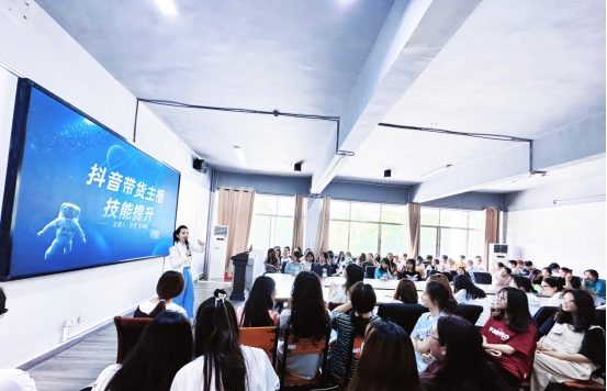 任凭老师结合抖音直播行业现状,从主播行业规范、主播带货技巧、主播职业素养等方面进行理论讲授,并在现场带领同学们进行了发音技巧等方面的实操训练。