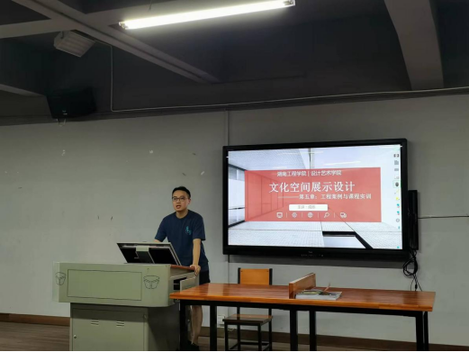 环境设计教研室通过磨课研课,优化细节。在展示课前,同一课程组的教师共同研讨,对教学内容和教学环节进行优化,提高课堂实效性,从而优化课堂教学。阳立球老师率先以《环境公共艺术设计》课程拉开了课堂教学的序幕,成烁老师的《文化空间展示设计》课程以课程思政为导向,结合实际工程案例对教学设计思路和教学过程进行了演示,胡翔副经理更是以身示范,模拟在停电状态下,如何灵活应变课堂,讲好一堂生动的《室内公共空间设计》课程。每位教师授课时热情饱满,无论是教学设计还是课件制作都做了精心准备,教学过程目标明确、条理清晰、重点突出。田蓉辉教授对每位教师进行了深入点评,提出了进一步完善和提升的建议,同时指出课程教学应当紧密结合创新课堂改革,做好课程思政融入。