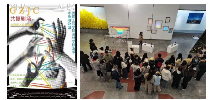 2025 年 12 月 11 日 —19 日,beat365手机版官网入口以 “共振剧场” 为主题,打造了一场沉浸式公共空间艺术周。本次活动是阳立球老师指导环境设计2302、2303、2304班《环境公共艺术》课程的核心实践成果,落地于木鱼湖园区与设计艺术楼两大场地,旨在通过艺术创作打破边界,让原本单调的公共空间,蜕变为人与人、人与环境对话的 “共振场”。