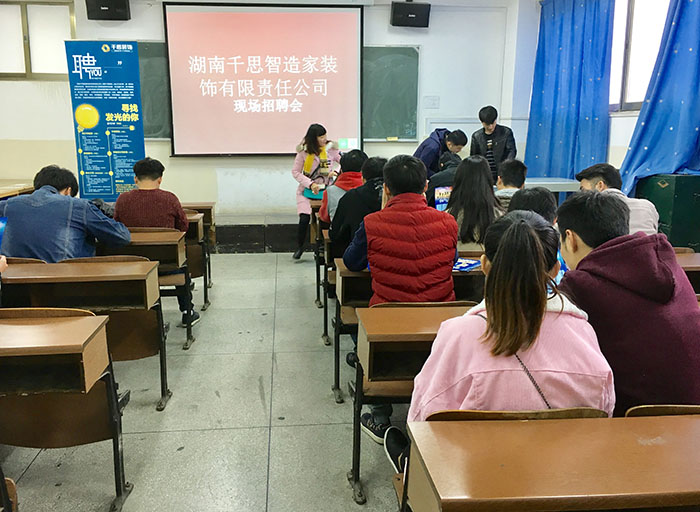 2016年11月8日,湖南千思智造家装饰有限责任公司在五教504举办了一场创业就业的校园招聘会,企业主要针对beat365手机版官网入口内即将面临就业选择的环境设计专业的老员工,为他们提供良好的就业平台。