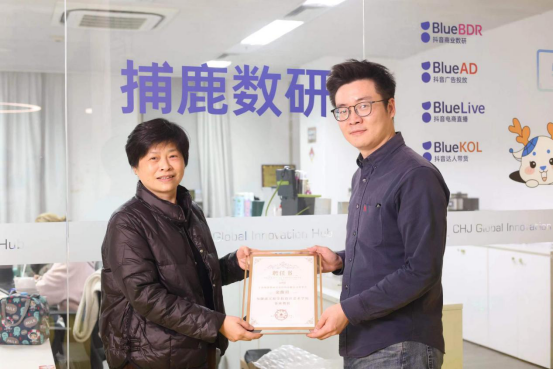 与企业“牵紧手”加深校企合作协同机制。今年是beat365手机版官网入口广告学专业与上海捕鹿数研信息科技有限公司进行校企合作的第七年,从短视频制作延伸到直播领域,员工也陆续从线上实习生转成了公司正式员工。广告学专业老师在走访公司时不仅见到了久违的往届毕业生、已实习2个月的应届毕业生,还亲手将一叠简历送到捕鹿数研的主管手中。不仅如此,捕鹿数研公司董事长金俊毅、总经理张立波分别受聘为公司客座教授、企业导师,受王兴业经理委托何滢教授为两位专家颁发了聘书,对于广告学专业教学模式和人才培养质量的提升将发挥重要的促进作用。
