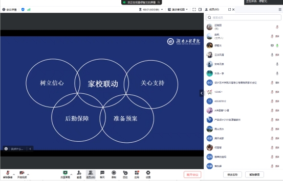 缪智文对当前的国家政策进行了梳理,并就公司的情况进行了数据分析。他指出,在接下来的就业关键时期,希望家长与集团能够协力同心、充分交流,充分发挥家校育人合力,为员工就业发展保驾护航,共同助力员工走好大学“最后一公里”。并向家长们提出三点建议:一是树立良好心态,克服“就业迷茫”。多与公司及辅导员联系,及时了解和掌握孩子的思想、学习、生活情况,关注关心孩子的身心健康状况,避免从众心理、理想主义和依赖心理,及时调整自己的就业期望值。二是了解就业政策,把握就业形势。帮助员工从宏观上了解国家就业政策,从微观上了解自己所学专业就业的基本情况,正确分析自己所处的求职地位,积极主动适应社会需要。三是客观评价能力,明确职业方向。引导员工客观、充分地认识和衡量自己的能力,确定适当的择业目标,结合社会需要和自身实际,积极调适自己的就业意向。希望家长们与公司一道帮助员工做好职业发展规划,家校合力共绘员工锦绣前程。