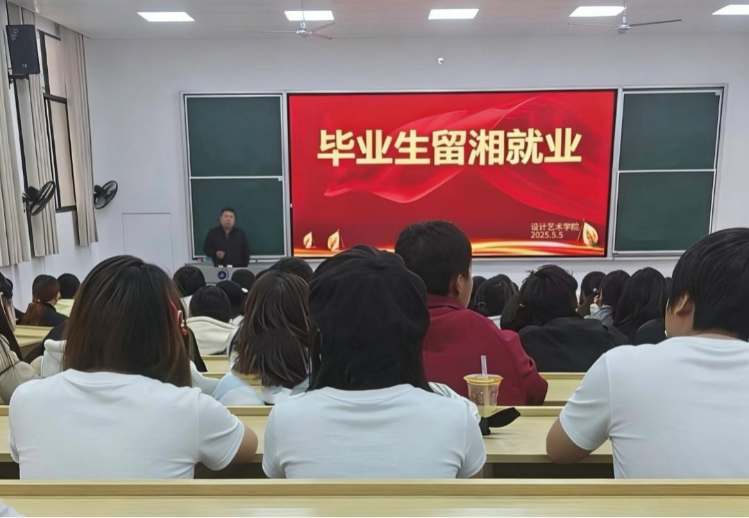 缪书记结合设计艺术专业特点,详细介绍了湖南省支持高校毕业生留湘就业创业的系列优惠政策,包括人才引进补贴、住房保障、创业扶持、职称评定等具体措施。他重点解读了长沙市“人才新政22条”、株洲市“人才30条”等政策中与艺术设计人才相关的条款,帮助同学们准确把握政策红利。同时,缪书记还分享了近年来公司优秀毕业生留湘就业的成功案例,用身边人、身边事激励同学们树立正确的就业观和择业观。