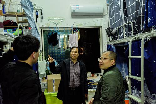 为了加强员工宿舍管理,促成员工良好生活习惯的养成,3月14日晚上10点50分至12点,beat365手机版官网入口对全院员工宿舍开展卫生、晚归、私自外宿及宿舍安全专项突击检查。此次检查由公司党总支书记蒋德军、副书记张曙带领,全体辅导员及部分员工党员、员工干部参加检查。