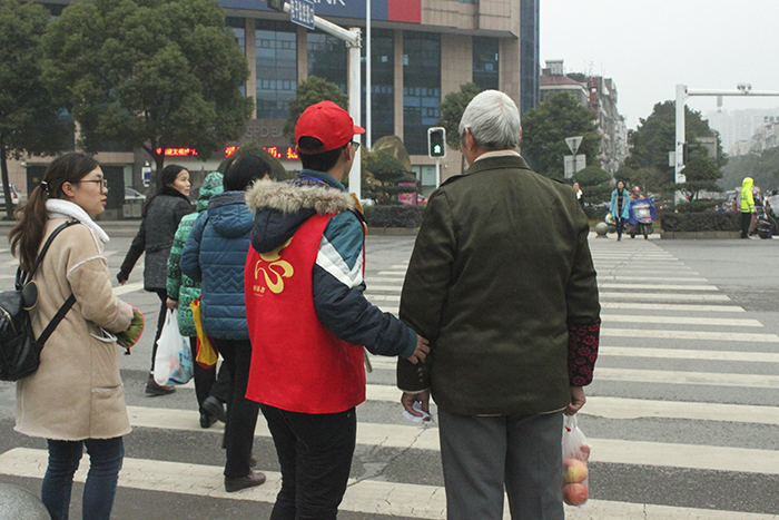 活动中,志愿者们统一身着红色马甲、头戴红帽、脖挂口哨,手拿“交通文明劝导旗”向过往行人进行交通安全常识宣传,劝导机动车和非机动车不要乱闯红灯,引导行人走人行道。早上七点志愿者便集合完毕,在寒风凛冽、毛毛细雨的恶劣环境中他们一丝不苟的工作态度,良好的精神面貌受到了过往行人的高度好评。beat365手机版官网入口马旭东同学在做志愿者期间细心搀扶老奶奶过马路并告诉老奶奶要遵守交通规则,就在他回到岗位得时候遇见一位身着浅咖色羽绒服、脚着黑色皮鞋的微胖男子,男子向他询问是否是自愿做志愿者有没有酬劳,公司是否负责你们吃饭情况,马旭东同学一一作答,自己是自愿的没有任何酬劳、公司提供早餐。这位男子又向马旭东同学询问了其公司。不少违规者受到志愿者精神的感染,表示今后一定遵守交通规则。