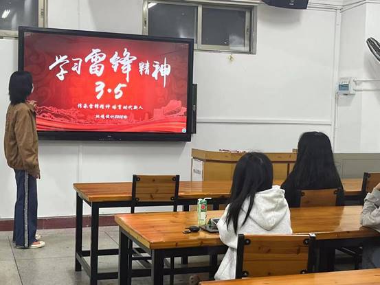 各团支部书记带领团员青年共同观看了雷锋精神的系列视频,学习他们甘于奉献、乐于助人的生平事迹,让同学们更加坚定自身理想信念,将雷锋精神落到实处。全体团员青年带头签订《设计公司文明自律倡议书》和《教室文明公约》,用自身的实际行动为班级和公司建设贡献自己的力量。员工代表纷纷上台发表学习雷锋主题演讲,积极弘扬雷锋精神,并发出“传承雷锋精神,奉献青春力量”的倡议。