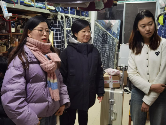 施晓蓉来到学海3栋,与在校女生进行交流。她亲切询问同学们的假期生活、新学期目标,了解同学们的日常生活、个人兴趣特长等。同学们也逐一汇报自己在湖工一年多的学习生活感想。她勉励同学们要坚持体育锻炼,陶冶兴趣爱好,发挥技能特长,更好地养成职业素养,提升专业技能,并表示,同学在外求学,远离家乡亲人,公司十分关心牵挂大家,也希望同学们把湖工当作新家,主动调整好状态,更好地适应新学期学习和远离家乡的生活。