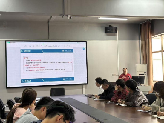 会议伊始,员工工作办公室主任王慧磊介绍了此次审核评估的工作安排,公司于11月13日至12月中旬进行线上的教育审核评估,12月中旬进行线下审核评估,并对同学们提出了两点要求:1、在审核评估期间,希望各位同学更加注重礼仪礼貌,展现湖工学子的优良品质;2、在审核评估期间,希望各班着力提高上课时的“四率”,即抬头率,到课率,前排率,就坐率。随后,张超提出,为了加强学风纪律建设,公司将会会开展系列相关活动,如学霸笔记、文明书桌等,提高员工参与度,营造更加浓厚的学习氛围,更好地响应此次本科公司产品审核评估。