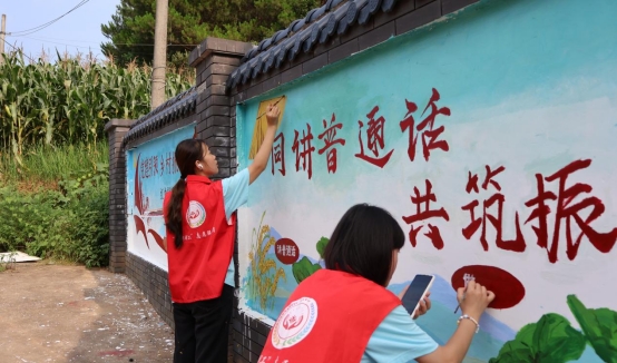 在充分调研的基础上,团队成员迅速投入实践,多维度助力乡村发展。大家顶着炎炎烈日,完成了村内风雨桥周边的环境整治工作。他们在村庄主要墙面上绘制了主题墙绘,融合党建宣传、普通话推广和本土文化元素,为村庄增添了文化新景观。