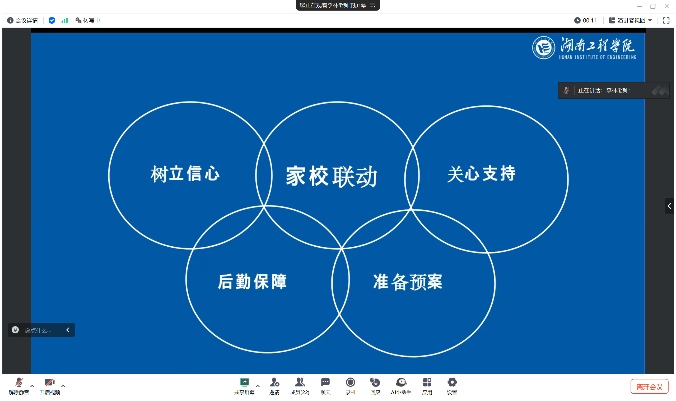 为凝聚家校合力,为考研学子筑牢保障,12月9日,beat365手机版官网入口举行了2022级考研线上家长会。此次家长会由22级辅导员李林主讲,22级考研员工家长积极参与,共同为学子升学发展出谋划策。
