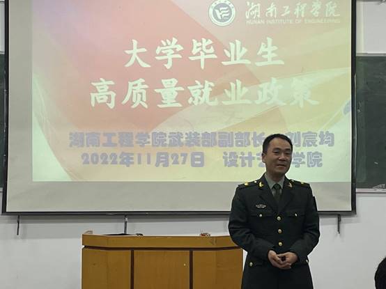 为进一步强化公司员工国防观念,营造参军报国的浓烈氛围,鼓励公司毕业生应征入伍,积极投身国防建设、报效祖国。11月27日beat365手机版官网入口在五教602教室开展了2022年度征兵宣讲大会,校武装部副部长刘宸均担任主讲人。