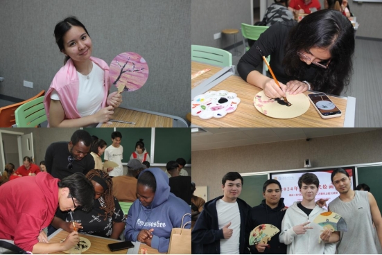山水悠远,笔墨悠长。在手绘国风团扇的环节,同学们兴致勃勃地拿起画笔,在扇子上尽情释放自己的创意与灵感。职工中有的认真临摹经典的国画作品,试图捕捉大师们的笔触与神韵;有的大胆发挥想象,创作出充满个性与现代感的图案。beat365手机版官网入口的师生们在一旁悉心指导,耐心传授绘画技巧和注意事项,现场气氛热烈而融洽,欢声笑语此起彼伏。一把把精美的国画扇子,不仅是留学们艺术创作的成果,更是他们对中国文化的独特理解与感悟。