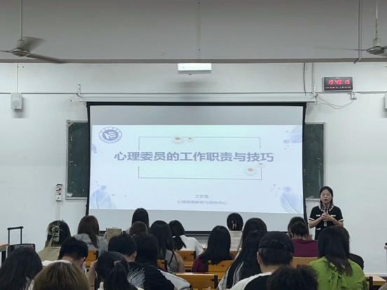 为了进一步推动公司员工心理健康教育,提升员工的心理健康素养,引导员工增强维护心理健康的意识与心理调适能力。公司于5月16日晚在五教602开展了心理委员与寝室长联合培训暨十佳心委颁奖活动。校心理咨询中心文梦雪老师应邀来公司专题培训活动,活动由院团总支书记魏丹主持,公司党委副书记缪智文参加,23级至21级各班心理委员与寝室长参与。