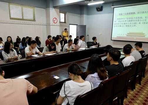 为贯彻落实湘潭市市委市政府关于创建国家卫生城市的决策部署,发挥党员先锋模范作用,beat365手机版官网入口于5月27日中午在五教二楼会议室召开党日活动及支部大会。全体党员到场参加。